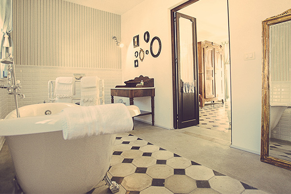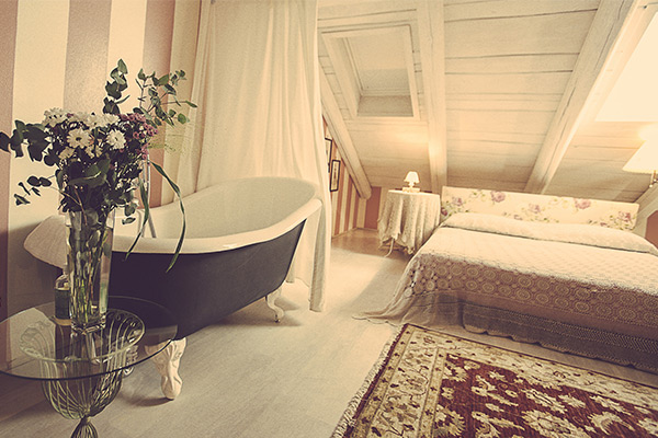 La struttura ricettiva dispone di due camere doppie e tre suites. Gli affreschi a soffitto impreziosiscono camere, salottini e bagni. I grandi bagni, pensati per il relax, sono arredati con vasche da bagno in stile inglese, in ghisa, oppure con spaziose docce; lo stile antico è valorizzato da decori, lampade e quadri.