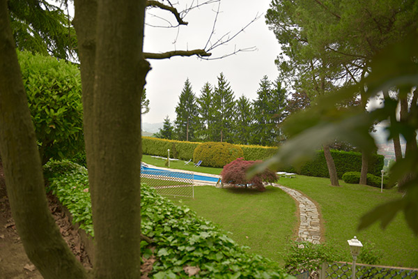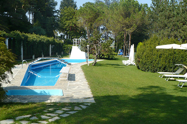 È presente una piscina, dalla caratteristica forma triangolare allungata, in mezzo al parco, accessibile esclusivamente agli ospiti della villa.