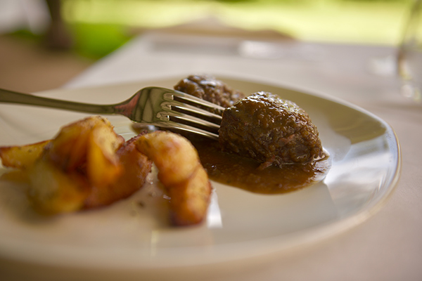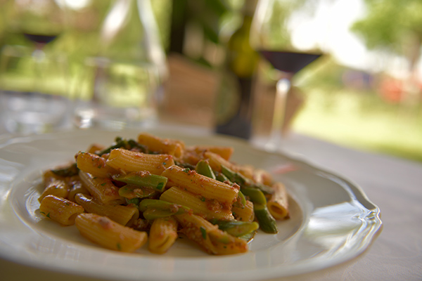 Alcune specialità: gigli con pancetta croccante e pomodoro fresco, coniglio alle erbe con sautè di bietole, spezzatino di guanciotti d’asino.
