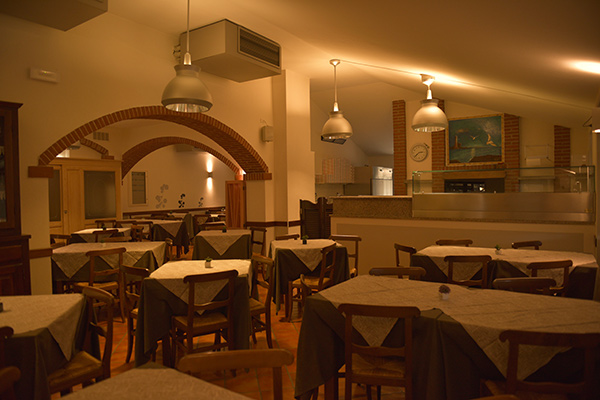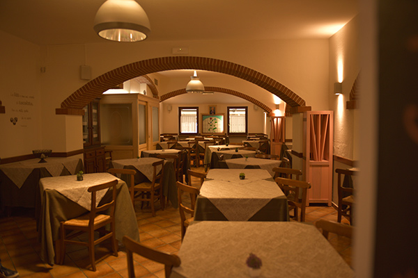 Il locale è dotato di una sala che può accogliere fino a un centinaio di ospiti, con la possibilità di ricavare ambienti più piccoli o riservati, mediante separé mobili. È presente, inoltre, una piccola saletta di circa quindici coperti.